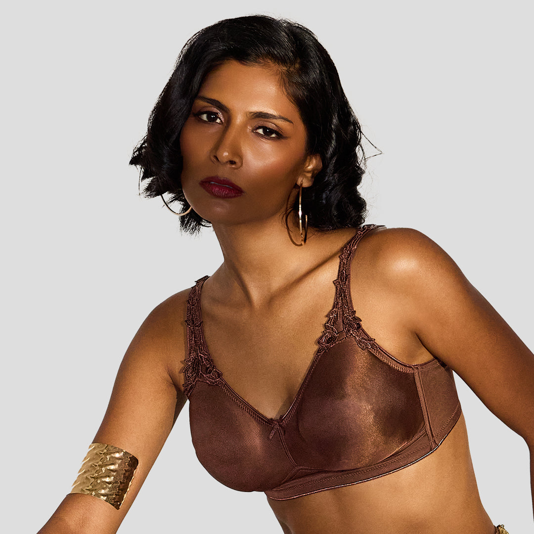 An expertly crafted minimiser bra that redistributes volume to create a smoother, more streamlined silhouette. Designed with moulded cups, a controlled outline for elevated coverage, and an elegant high-neck structure that provides full design support.
