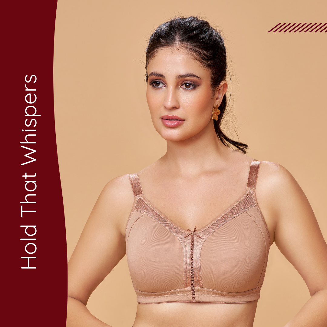 Experience natural comfort with the MAROON Warm Taupe Seamless Non-Padded Non-Wired Full Coverage Everyday Bra for Women. Designed in an ultra-soft cotton-rich blend, this bra offers a weightless feel, breathable support and all-day ease.