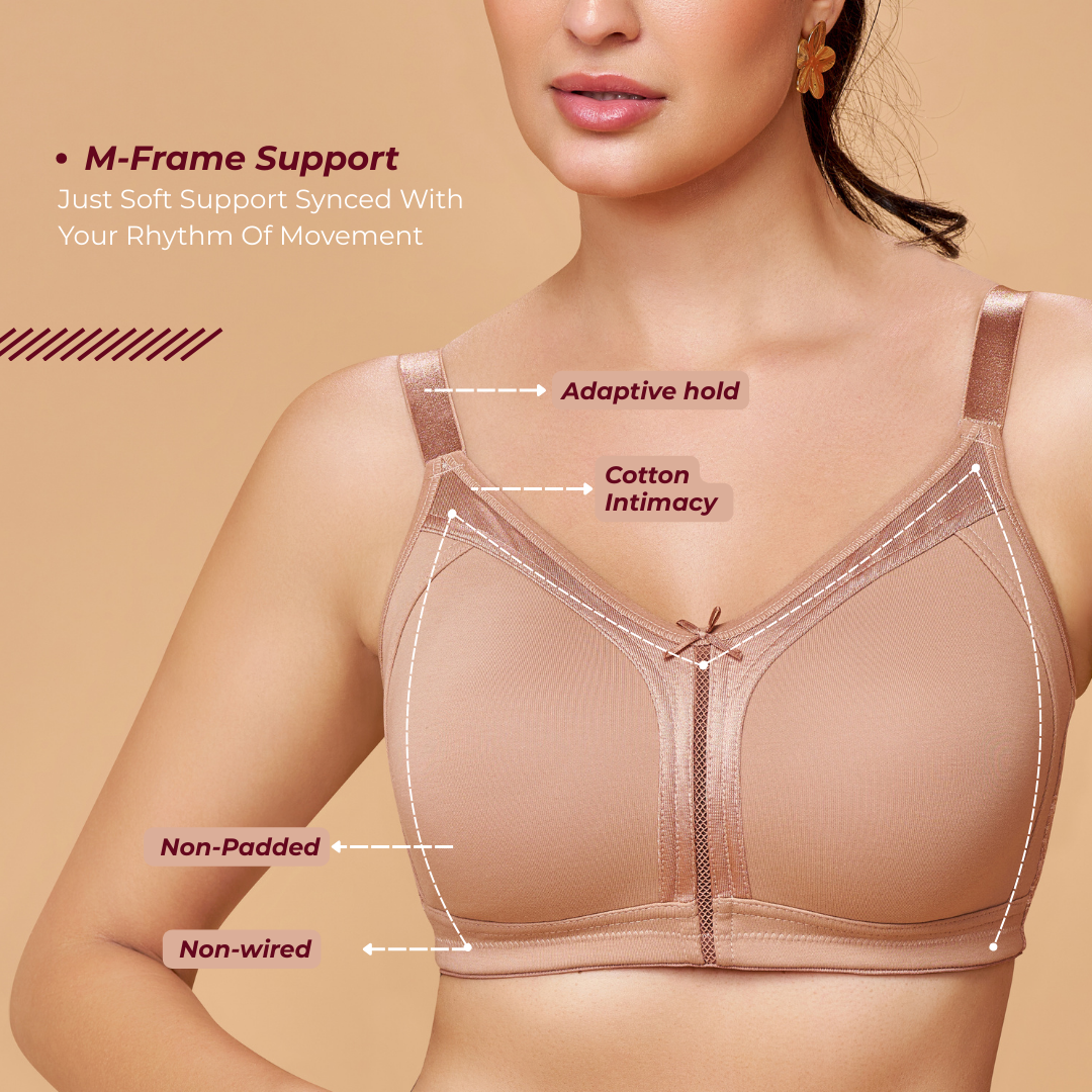 The M-Frame structure provides natural shaping and secure hold without padding or wires. Perfect for daily wear, lounging or long working hours.