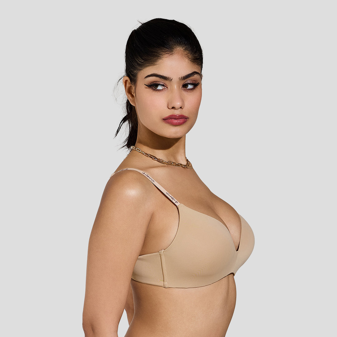 MAROON Velour Lift Find My Skin Tone Seamless Padded Plunge Deeper Cleavage Signature Straps Women Everyday T-Shirt Bra - Caramel